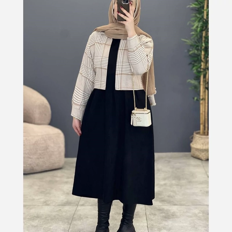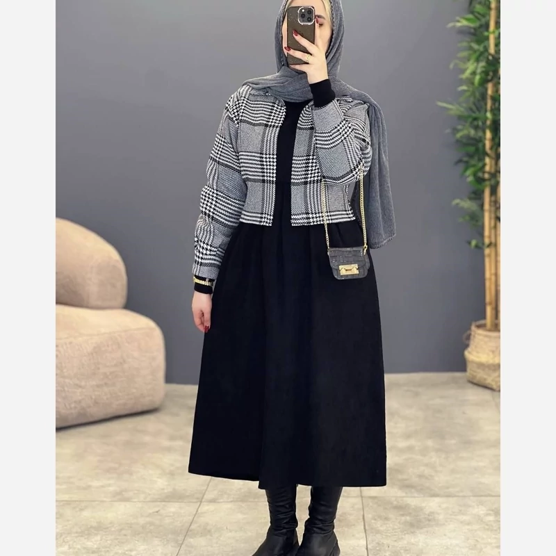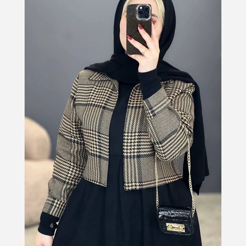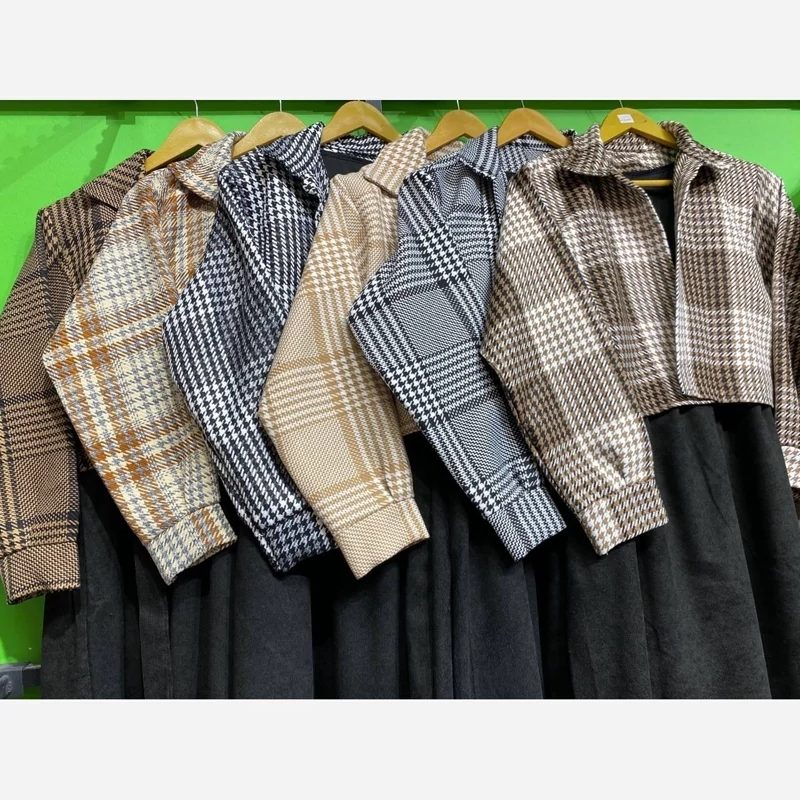 کت و سارافون زنانه جنس کت پشمی جنس زیره کبریتی ریز از سایز 38 تا 44 ساپورت می کنه فری سایز هستش