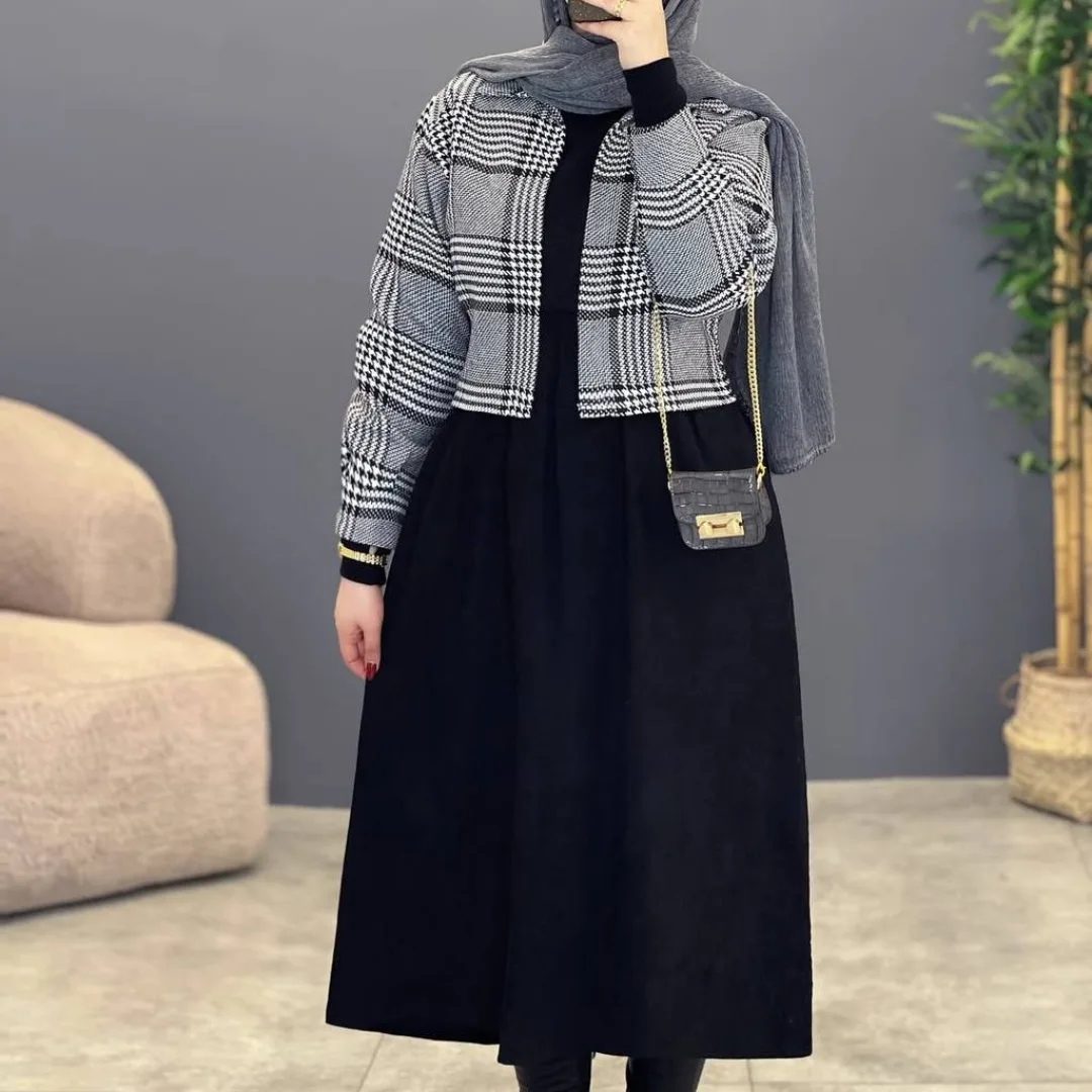 کت و سارافون زنانه فری سایز از ۴۴ ساپورت می کنه جنس زیره کبریتی ریز جنس کت پشمی درجه۱ در سه رنگبندی کرم ، مشکی ، قهوه ای